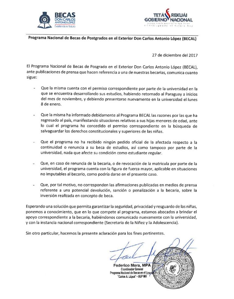 14/12/2017 BECAL comunica a los/as postulantes a becas para la 5ª Convocatoria que